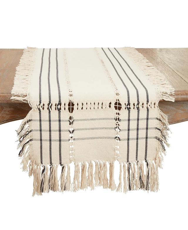 Saro Lifestyle Textured Bold Stripe Fringe Table Runner, 16" x 72"