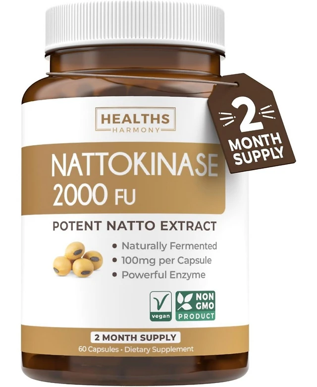 Nattokinase 2000 Fu (Non-gmo), Powerful Nattokinase Supplement Made from Naturally Fermented Soybeans for Heart Health Support, Healths Harmony, 60ct