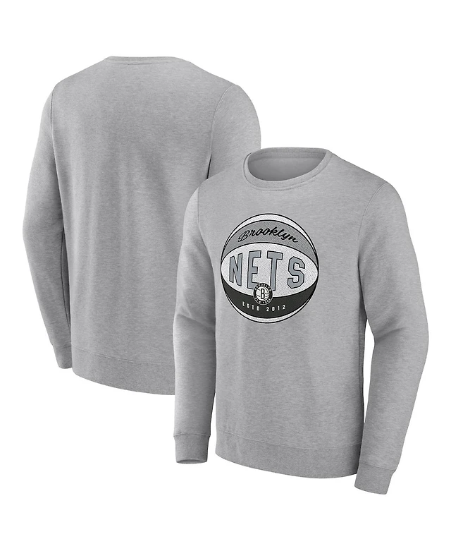Men's Fanatics Heathered Gray Brooklyn Nets True Classics Vint Pullover Sweatshirt