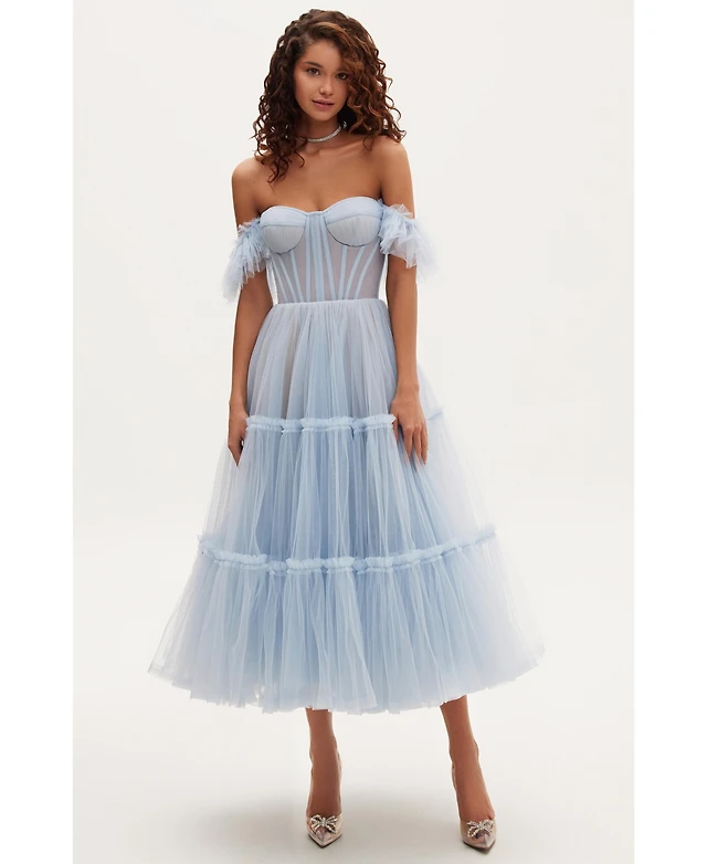 Milla Women's Cloudy Blue Tulle Maxi Dress With Ruffled Skirt