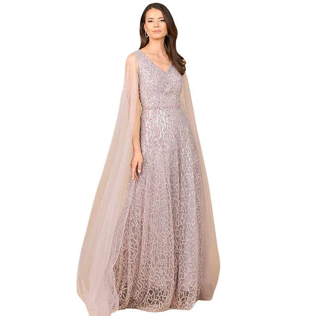 Lara Women's Beaded Lace Gown with Cape Sleeves