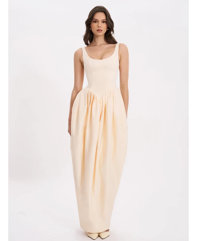 Miss Circle Women's Udana Butter Yellow Drop Waist Tulip Gown