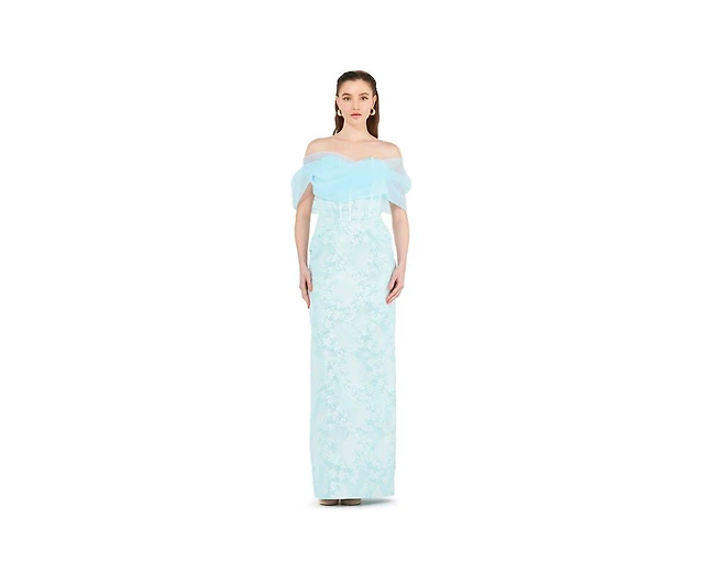 Amri Women's Off-The-Shoulder Corset Detail Brocade Gown