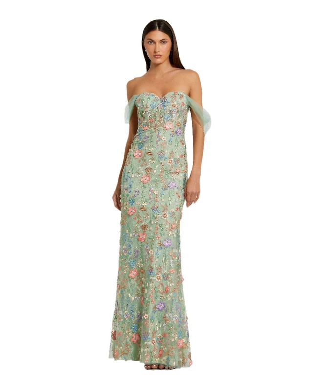 Mac Duggal Women's Off The Shoulder Bustier Emboridered Net Gown