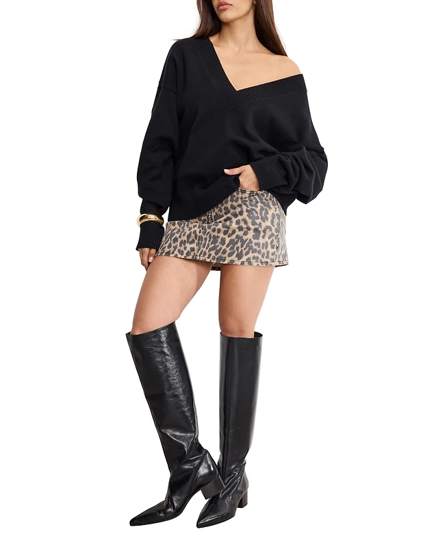 Anne Klein Women's Animal Print Boat Neck Sweater