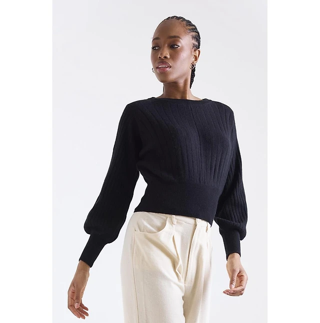 Wool blend sweater with shoulder detail