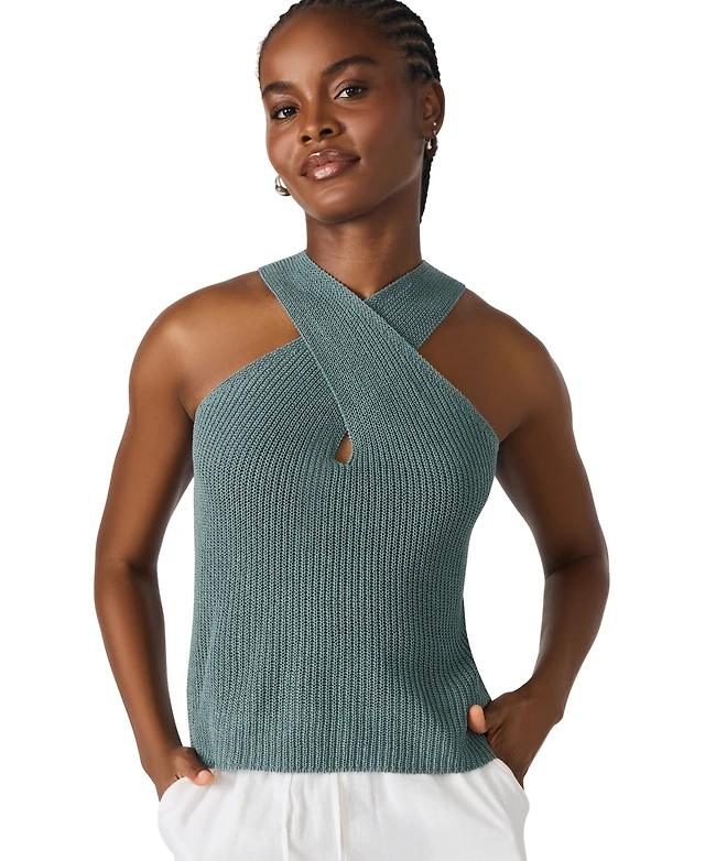 Nautica Jeans Women's Cotton Palm-Tree Open-Knit Sleeveless Sweater