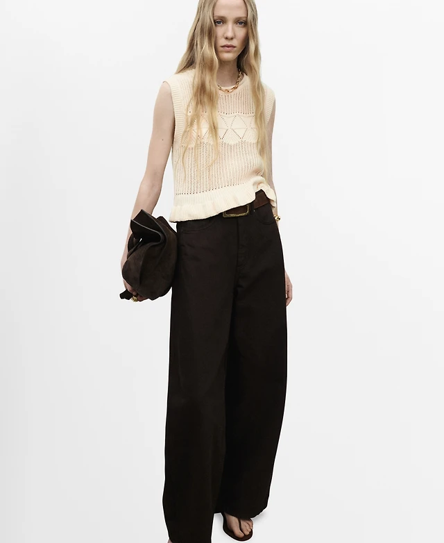 Calvin Klein Jeans Women's Cotton Open-Stitch Short-Sleeve Sweater