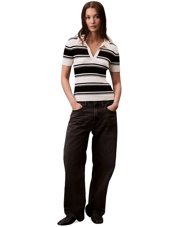 Calvin Klein Jeans Women's Cotton Polo Striped Short-Sleeve Sweater