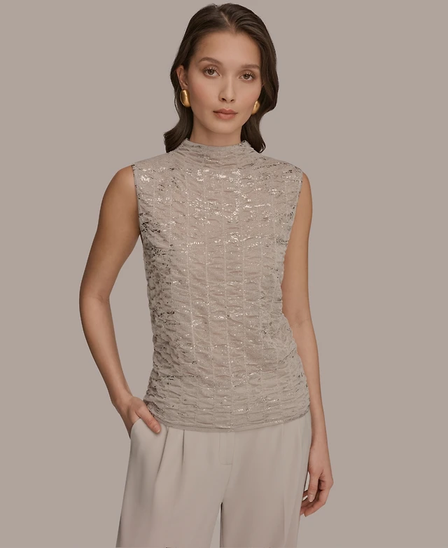 T Tahari Women's Beaded-Sleeve Mock Neck Sweater