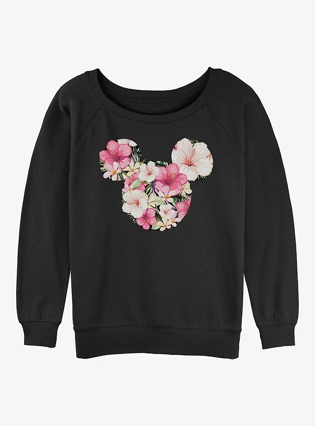 Disney Mickey Mouse Flowers Womens Slouchy Sweatshirt