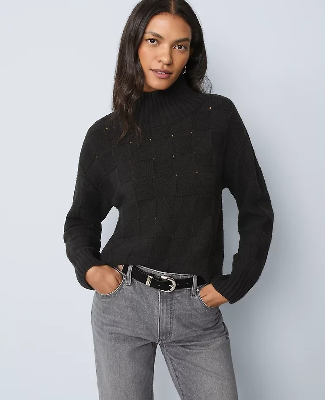 Anne Klein Women's Embellished Rhinestone-Detail Turtleneck Sweater