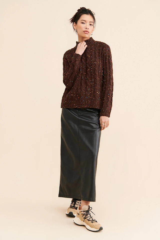 Hope & Henry Women's Organic Tweed Stitch Turtleneck Sweater