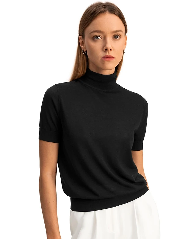 Lilysilk Women's High Neck Short Sleeves Silk Knitted Sweater Top