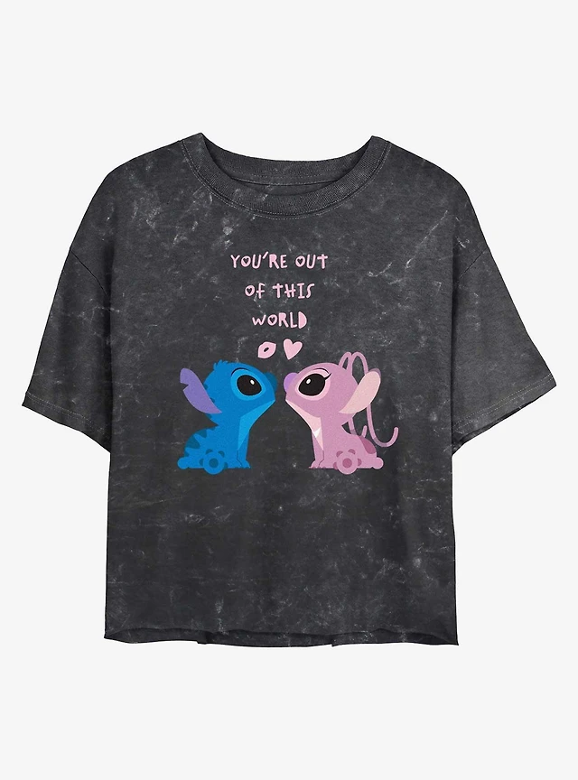 Disney Lilo & Stitch Out Of This World Angel Womens Mineral Wash Crop T-Shirt