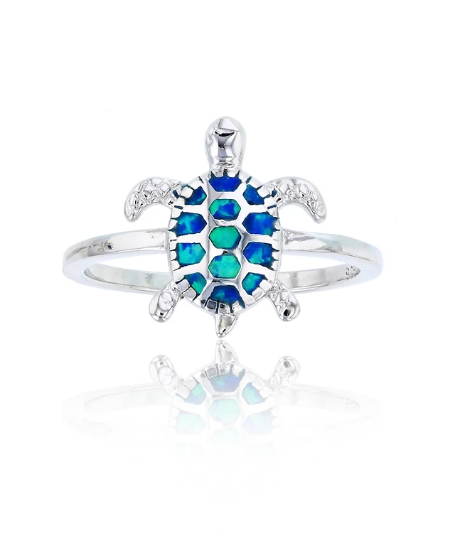 Macy's Created Blue Opal Inlay Turtle Ring Sterling Silver