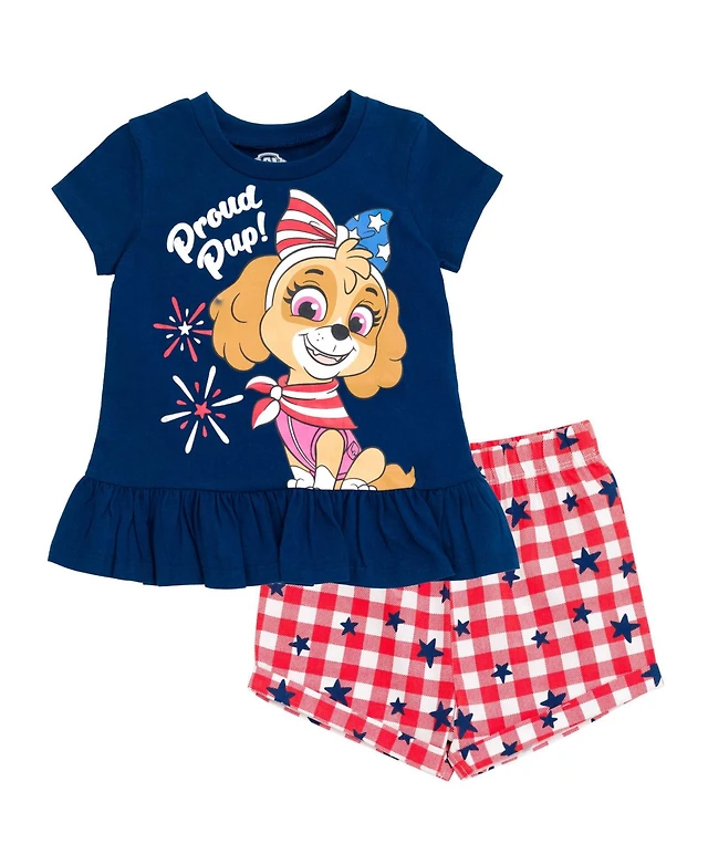 Paw Patrol Toddler Girls Skye July 4th Peplum T-Shirt and Twill Shorts Outfit Set to