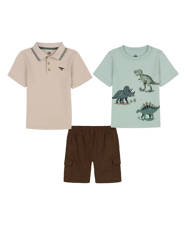 Kids Headquarters Toddler and Little Boys 3- Piece Tipped Polo, Graphic T-Shirt Twill Cargo Shorts Set