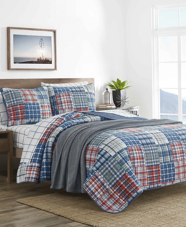 Nautica Raeford Blue Cotton Reversible 2 Piece Quilt Set, Twin