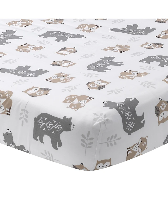 Bedtime Originals Baby Jungle Fun White/Gray/Blue Elephant & Lion Fitted Crib Sheet