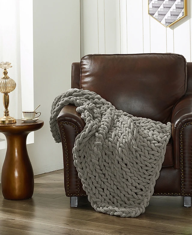 Lucky Brand Solid Plush Throw, 50" x 70"