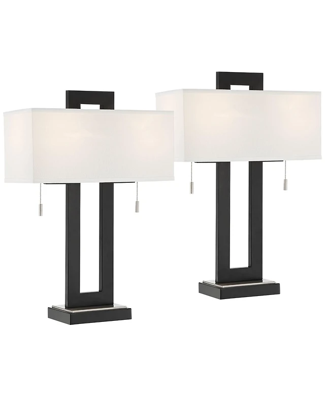 360 Lighting Neil 26" Rectangular Rustic Modern Table Lamps with Usb Port And Pull Chain, Set of 2