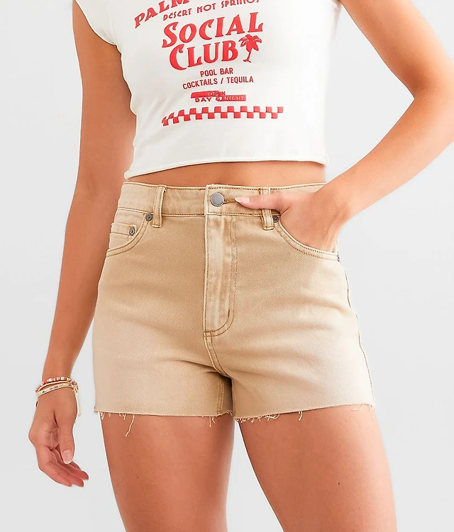 Rolla's X AC/DC Women's Medium Wash High Rise Studded Mirage Cut-Off Denim Shorts