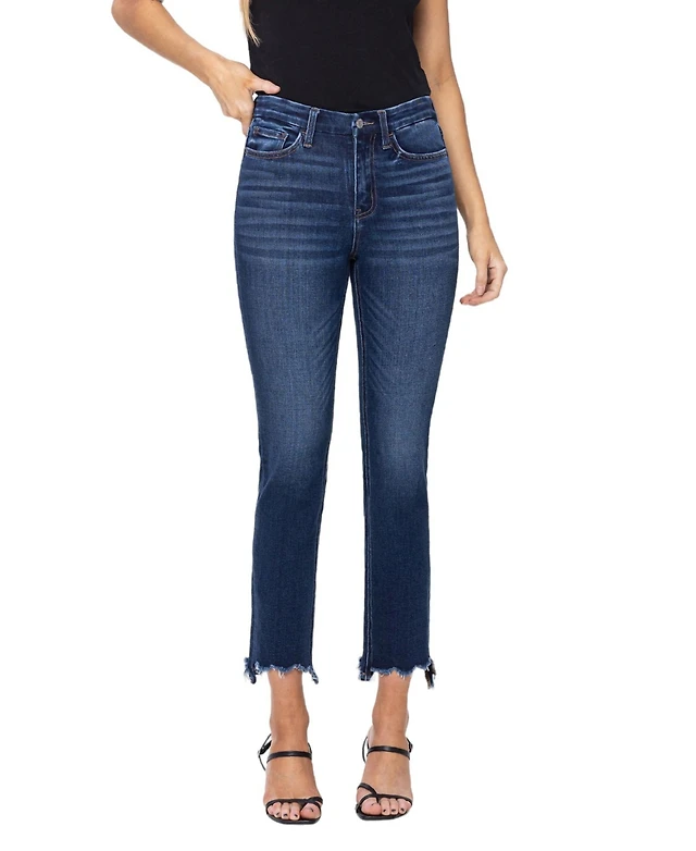 Tall Button Front High Rise Kick Crop Jeans in Bright Mid Indigo Wash