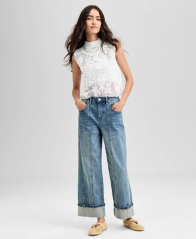 Cleo + Wolf Women's High Rise Distressed Stretch Loose Wide Jeans