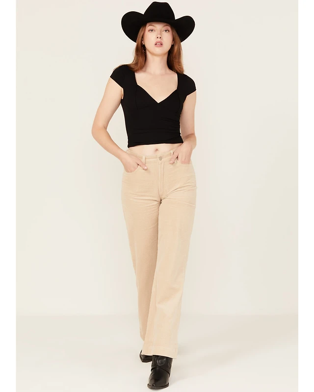 Rock & Roll Denim Women's High Rise Bargain Corduroy Button Flare Jeans