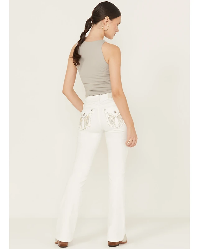 Miss Me Women's Wing Embroidered Mid Rise 32" Bootcut Stretch Denim Jeans