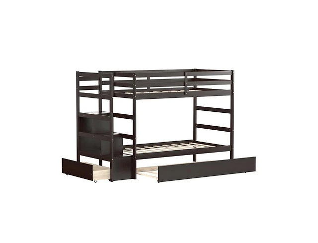 Streamdale Furniture Twin over Bunk Bed w/ Storage Stairs, Slide, 2 Drawers, Walnut