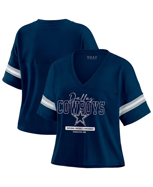 Wear by Erin Andrews Women's Green New York Jets Color Block Boxy Modest Crop V-Neck T-Shirt