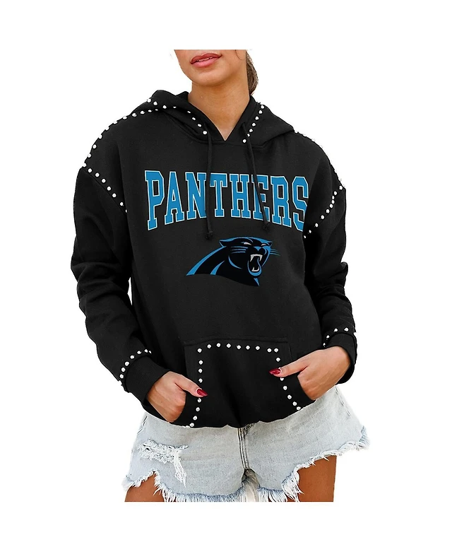 Gameday Couture Women's Black Carolina Panthers Oversized Catch the Vibe Studded Pullover Hoodie
