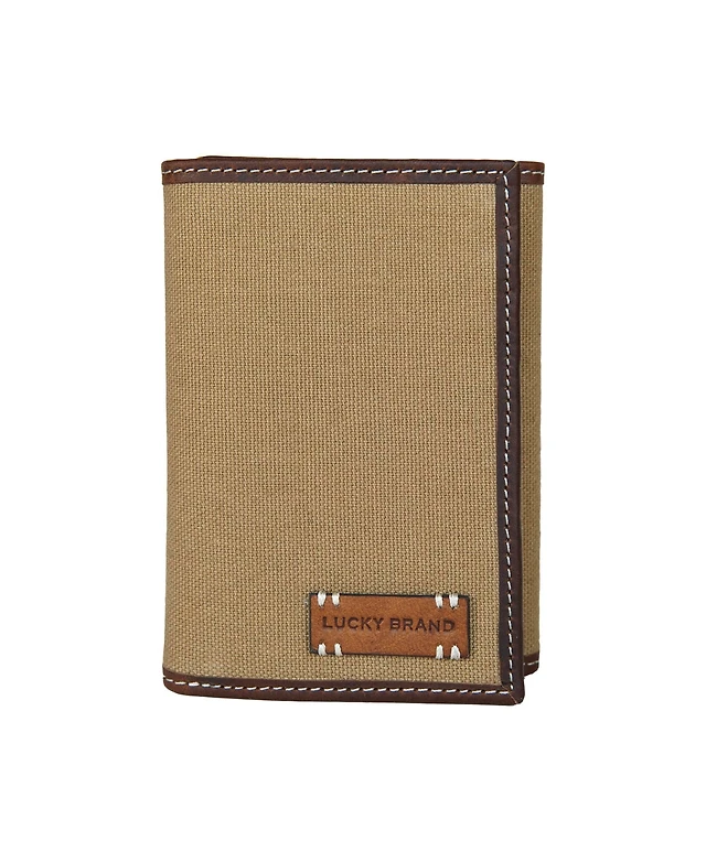 Lucky Brand Men's Canvas with Leather Trim Trifold Wallet