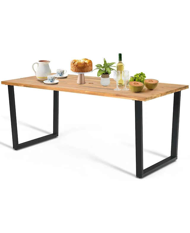 Patio Outdoor Solid Wood Dining Table with Umbrella Hole – Seats 6 for Backyard, Deck, or Garden