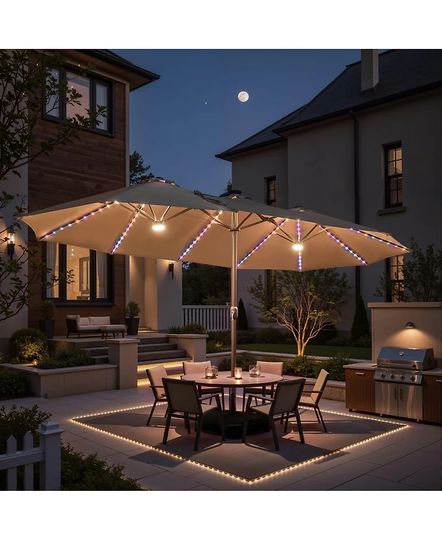 Streamdale Furniture Solar Led Patio Umbrella Crank, Tilt, 10x6.5 ft