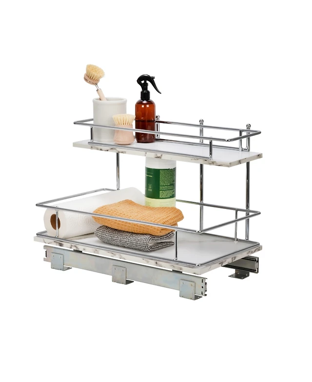Household Essentials Glidez Chrome-Plated Steel and Faux Marble Pull-Out/Slide-Out Storage Organizer for Under Sink or Cabinet 2-Tier Design