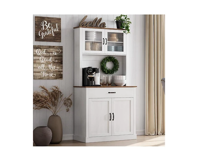 gaomon 60'' Kitchen Pantry Cabinet, Tall Pantry Cabinet with Glass Doors, Large Kitchen Hutch with Storage Drawers, Farmhouse Kitchen Cabinet