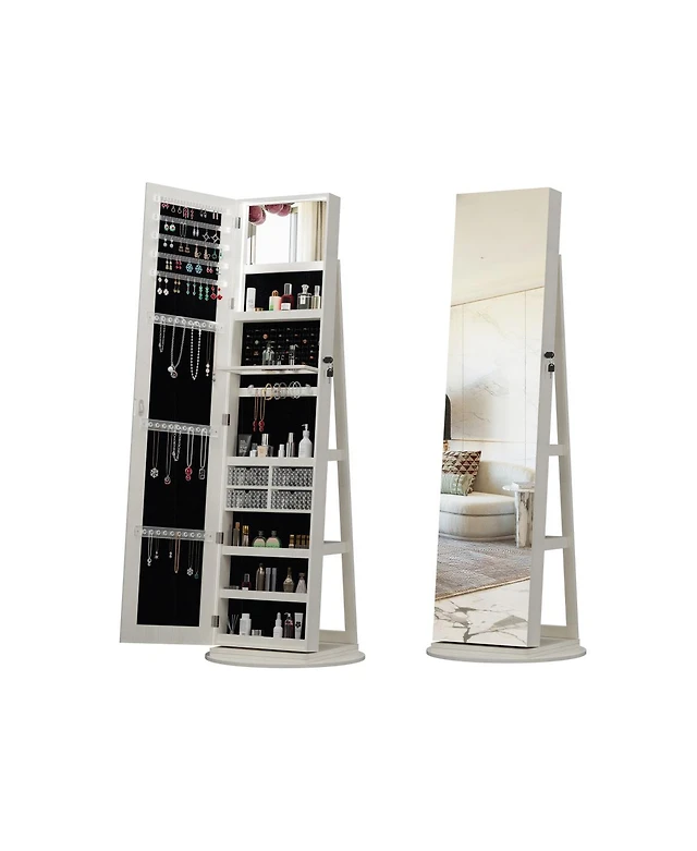 Homsee Wardrobe with Top Cabinet and Mirror, Bedroom Closet, Armoire,