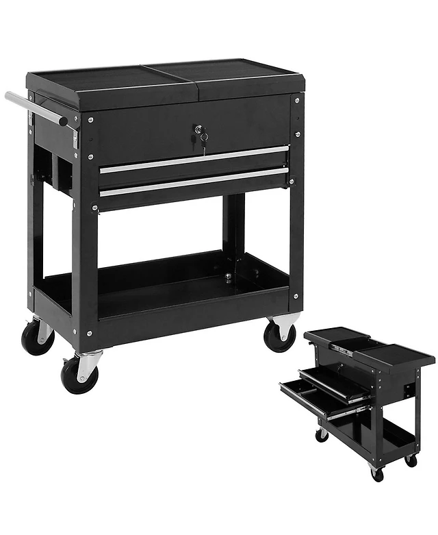 Rolling Mechanics Tool Cart Slide Top Utility Storage Cabinet Organizer 2 Drawer