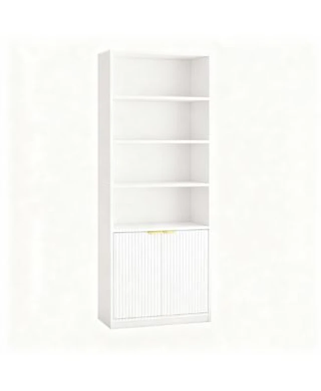 Gouun 4 Tier Wood Bookshelf with Door and Storage Cabinet