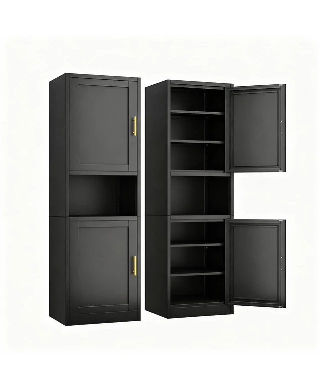 gaomon Kitchen Pantry Cabinet with Microwave Stand and Coffee Bar 4 Doors