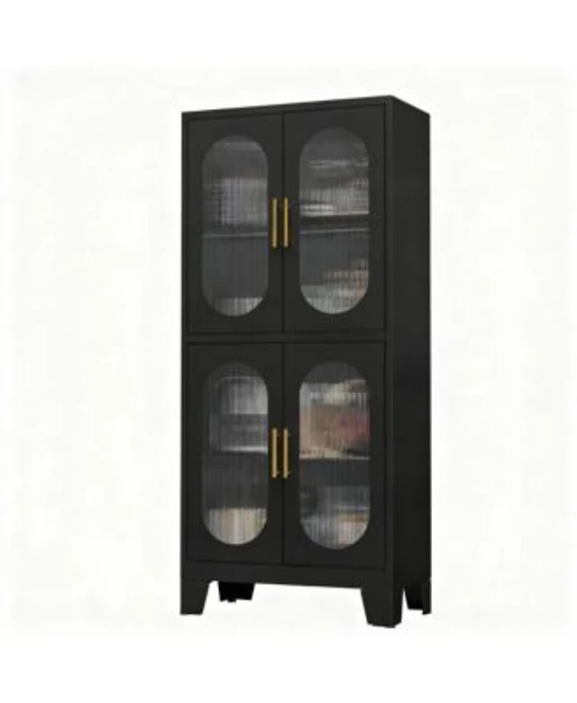 gaomon 73" Tall Pantry Cabinet, Metal Kitchen Storage Cabinet with Fluted Glass Doors & Adjustable Shelves for Kitchen, Bathroom, Living Room & O