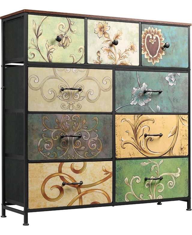 Wlive 10-Drawer Dresser Fabric Storage Tower for Bedroom Hallway Closets Tall Chest Organizer Unit with Textured Print Fabric Bins Steel Frame Wood To