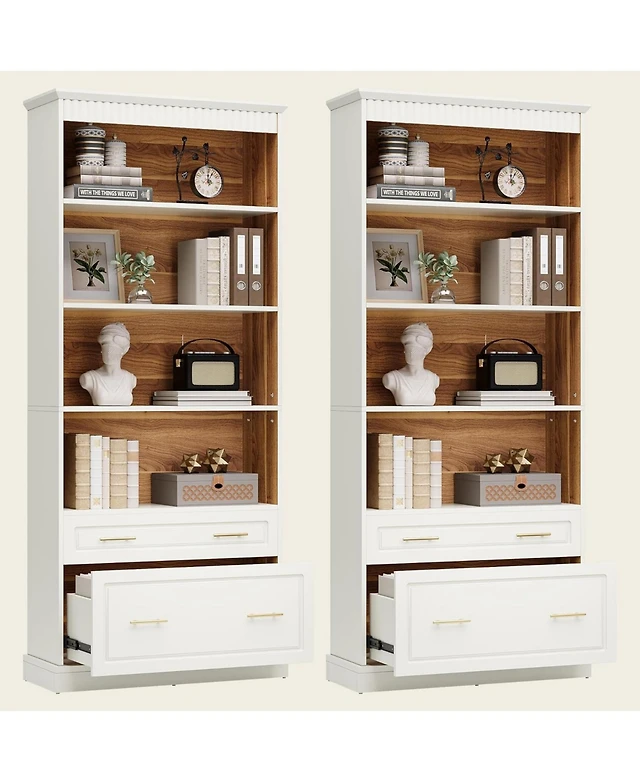 Sorbus 7-Tier Zigzag Tree Bookcase with Open Drawer for Books, Decor, and Accessories - Space-Saving Organizer Unit for Living Room, Bedroom, Office