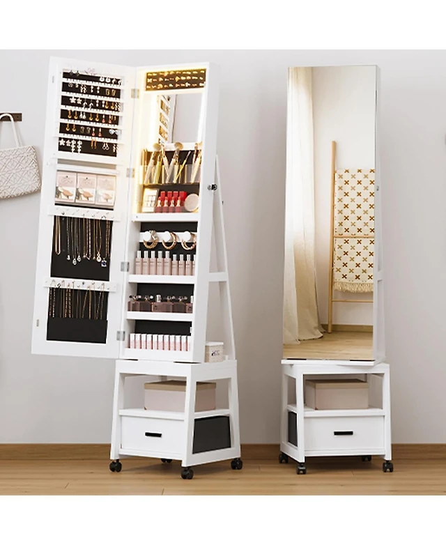 White Freestanding Storage Cabinet with Adjustable Shelves, Drawers, and Door