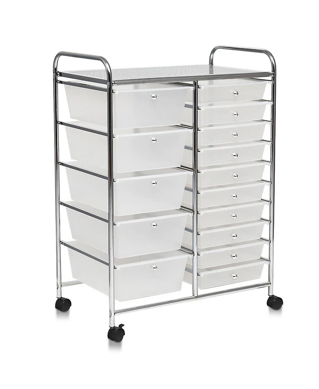 Household Essentials Glidez Steel Pull-Out Storage Organizer with Plastic Liners, 2 -Tier Design, Brushed Silver