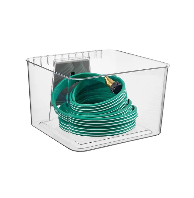 mDesign Slim Plastic Stacking Kitchen Bin Box, Handles/Lid, 6 Pack, Clear, Usa Made