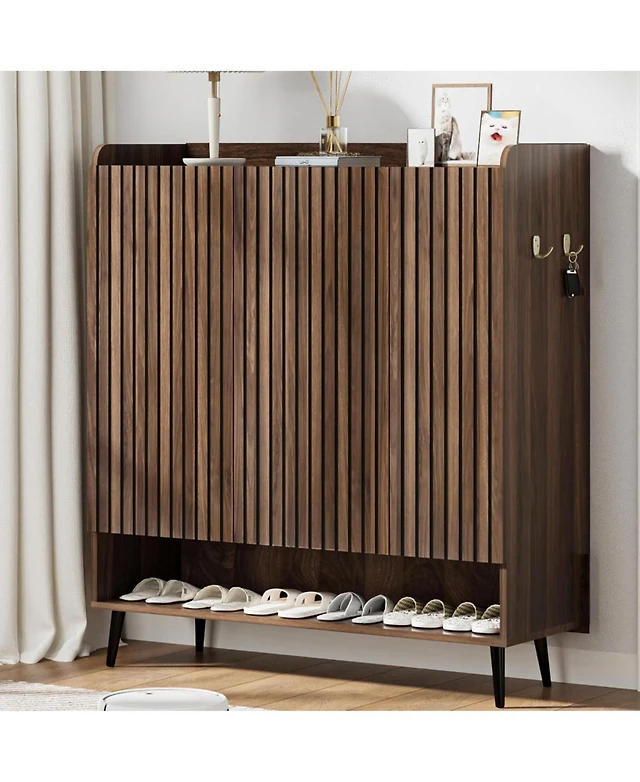 Streamdale Furniture Shoe Cabinet with Shutter Doors, 6-Tier Entryway Wooden Modern Rack Organizer, Walnut